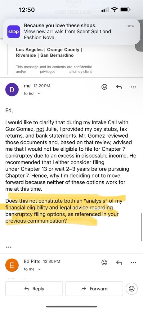 My experience with this law firm was short, yet stressful. I'm a young girl with debt that I so desperately want to get out of. I found OakTree and decided to take the leap and book a consultation. I ended up getting connected with Gus Gomez whom I met with in person. I was told I'd be qualified and to start the filing process I had to pay a certain amount of money up front. I ended up paying the full amount for Chapter 7 bankruptcy ($1,923) to get the process started as quickly as possible. After that, I proceeded to submit my tax returns, bank statements, and pay stubs prior to booking my "1-Hour Intake" (that only lasted 20 minutes by the way) where Gus just ends up telling me that I'm no longer qualified for Chapter 7. He told me my only options were to wait 2-3 years to file Chapter 7, try for Chapter 13 and dish out another $2,000, or back out of the bankruptcy all together. I took a day to think about it, then reached out to Gus to let him know I wanted to back out (he told me if I backed out, I would be refunded my money) because they didn't get far into the process. Never heard from him again. Ignored my calls, texts, and emails. Had my boyfriend call him as a "potential client" and Gus answered his call. This a-hole was completely dodging me. Over a week later I finally ended up getting an email from Ed Pitts agreeing to issue me a partial refund of only $1,423, charging me $500 for a phone call that was performed by a Bankruptcy Department Manager (Gus), not even an attorney. Said his services are considered "administrative duties" and that $500 is their fee for those duties. They failed to be transparent about this "fee" in my consultation and contract. I will be seeking resolution through the State Bar's Mandatory Fee Arbitration Program and filing a State Bar complaint regarding the handling of my case and the supervision of non-attorney staff. Do not recommend this place, this was not a pleasant experience would give 0 stars if Yelp allowed it.