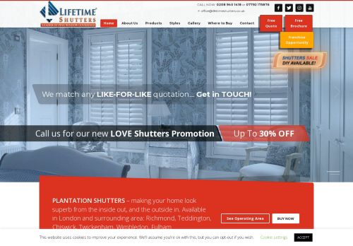 I have used lifetime Shutters three times now for three different addresses each time the service has been superb. Not only do they have a vast range of colours ( unlike others who seem to just have magnolia or white). Their product is exceptional, high quality and durable, not too shiny and after four years of use look as good as the day the shutters were fitted. The staff are polite and keep me posted regularly with updates on my order. their fitters are extremely polite and courteous, clean workers, take off their shoes and leave your premises immaculate. I cannot fault them.