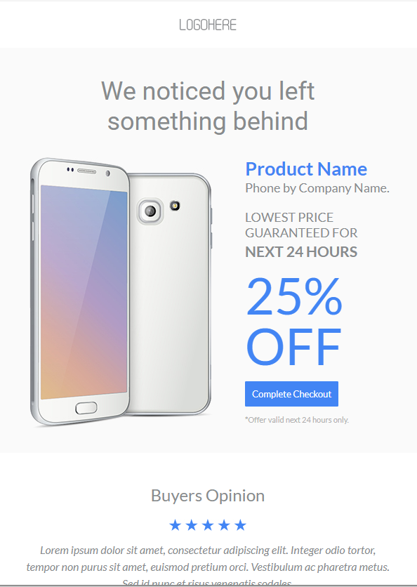 - Calls to action (CTAs): Your CTAs should be persuasive and compelling, urging prospective customers to return to their abandoned carts and complete the purchase.