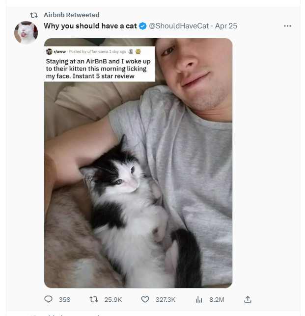 In addition to its Instagram success, Airbnb also utilizes Twitter to engage with its customers through user-generated content (UGC).