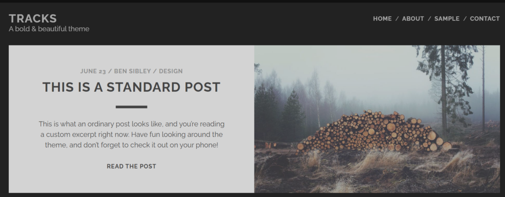 Tracks is a WordPress theme also made for podcasts, a sleek, minimalist design with a dark color scheme, makes it an excellent choice for displaying both written and audio content.