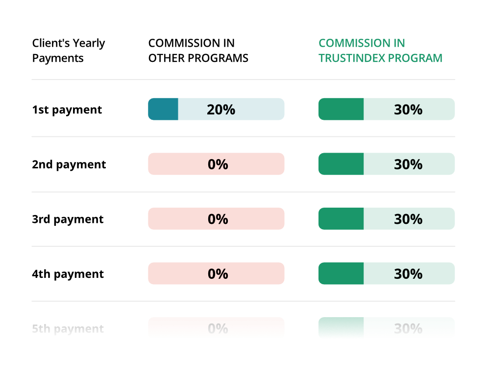 Get paid a recurring 30% commission whenever your referrals become subscribers of Trustindex.