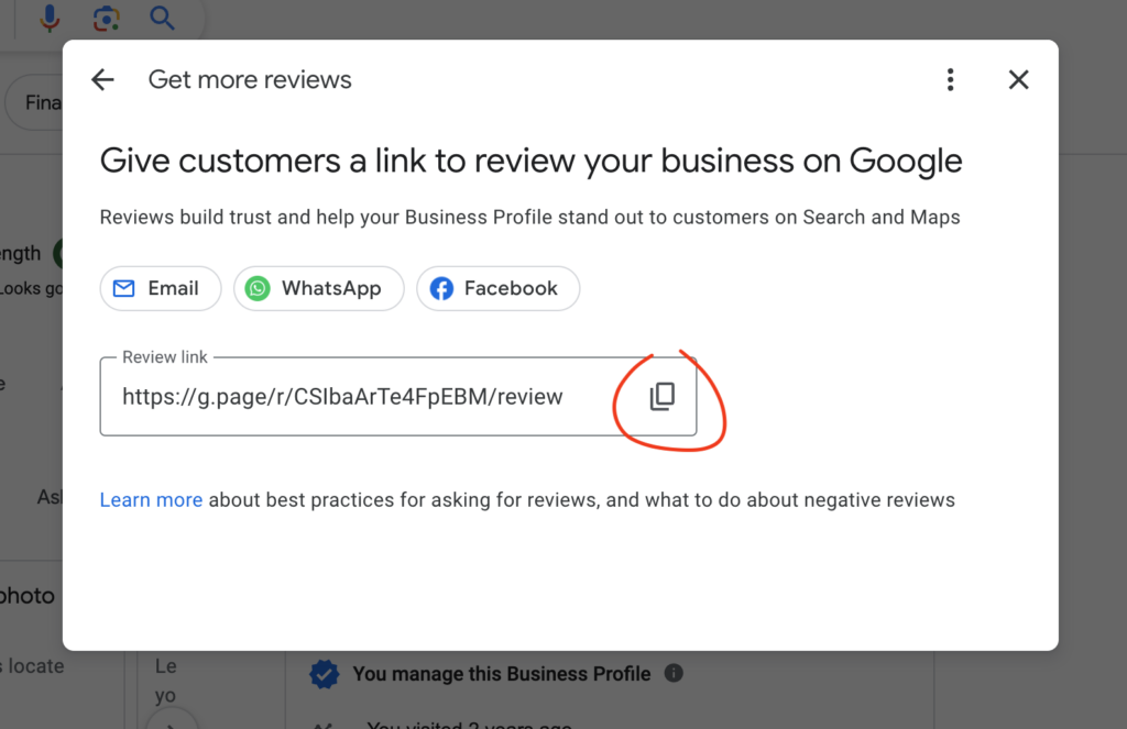 Get a Google review link from the search results page
