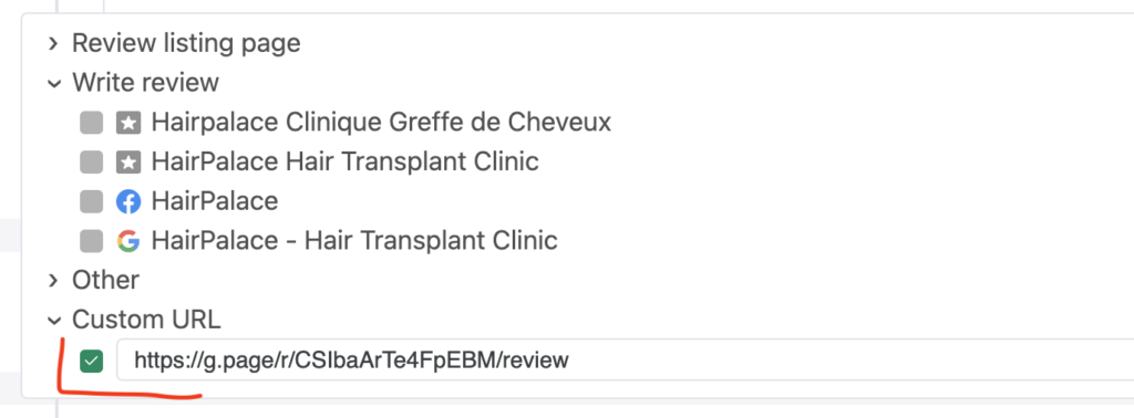 Step 4: Paste this link into the ‘Custom URL’ section of the Trustindex review link selector.