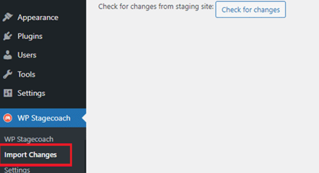 1.) Navigate to the WP Stagecoach » Import Changes page in your WordPress admin area and click on the “Check for Changes” button.