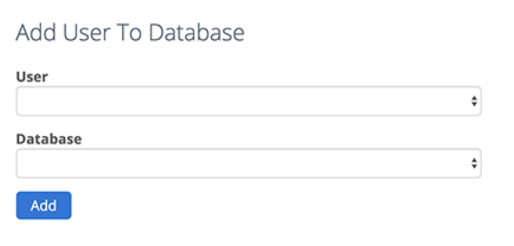 4.) Scroll further down to the “Add user to database” section, select your database and the user you just created, and click the “Add” button to proceed.