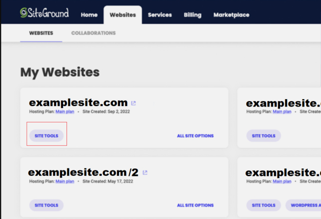1.) Log in to your SiteGround dashboard and navigate to the Websites tab.
