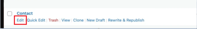 - Hover your mouse over the page title and click “Edit with Elementor” to open the page in the Elementor editor.