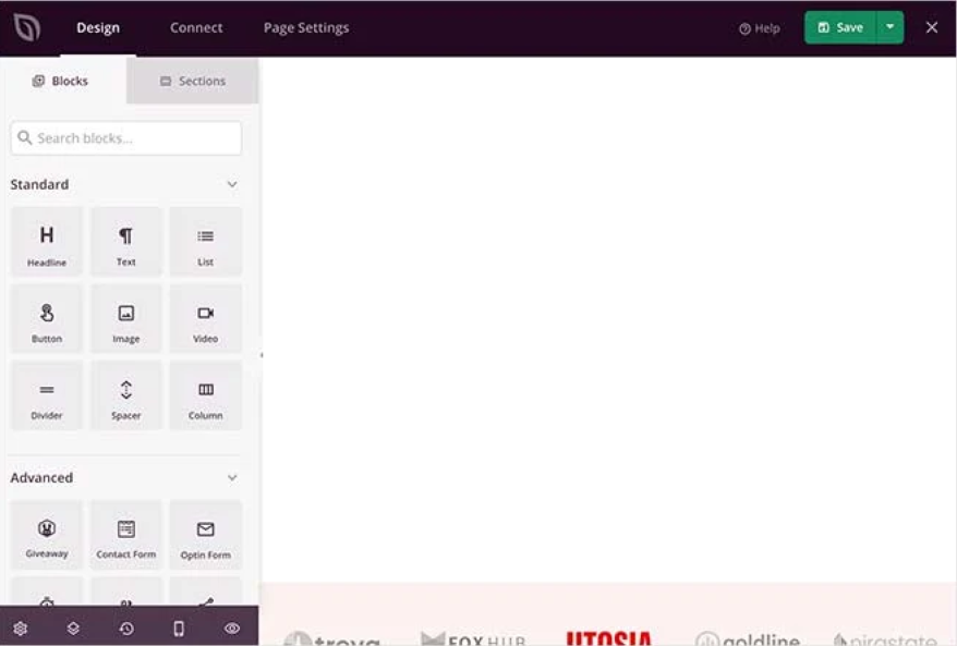 You will see a menu of premade sections you can use to build your page.