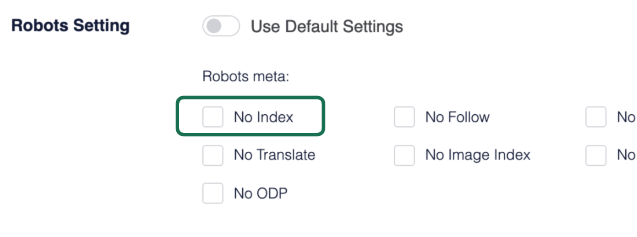 Within this tab, you will find a ‘Robots Setting’ option accompanied by a toggle switch labeled ‘Use Default Settings’.
