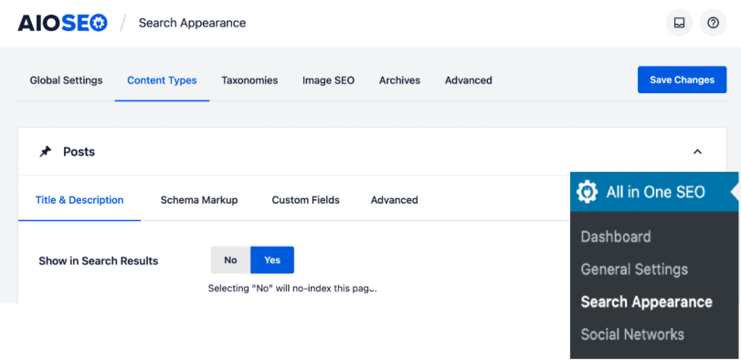 👩💻 1.) To accomplish this, navigate to the WordPress dashboard and click on “All in One SEO” and then select “Search Appearance.”
