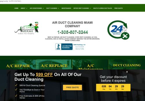 This is most affordable ac company they came out to fix my ac when the outside unit was not working they recharge my freon and clean my drain they maintained my ac they are so honest I will have them as my hvac company forever thank air duct cleaning miami