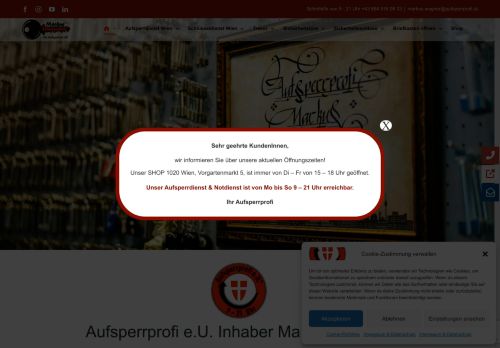 Die Firma Wagner hat mein Wochenende gerettet. Freitag Abends so gegen 19 Uhr ging das Schloss meiner Wohnungstüre (Sicherheitstür WK3) nicht mehr zu sperren. Ich kam zwar noch in die Wohnung hinein, konnte aber nicht mehr den Schlüssel abziehen. Der sympathische Herr am Telefon wusste sofort, was zu tun ist, und gab eine transparente Kostenaufstellung durch. Am Samstag Morgen kam der nette ältere Mann und reparierte mein Schloss zügig. (Ich konnte mir durch seine Kompetenz ein neues Schloss sparen.) Außerdem stellte er die Tür noch richtig ein, die sich nun nach 5 langen Jahren endlich problemlos aufschließen lässt. Eine Schraube hat er auch noch kostenlos ausgetauscht, um den Einbruchschutz zu verbessern. Der Herr arbeitete professionell, schnell und legte großen Wert auf Genauigkeit. Ich kann das Team von Aufsperrprofi e.U. zu 100% weiterempfehlen!!