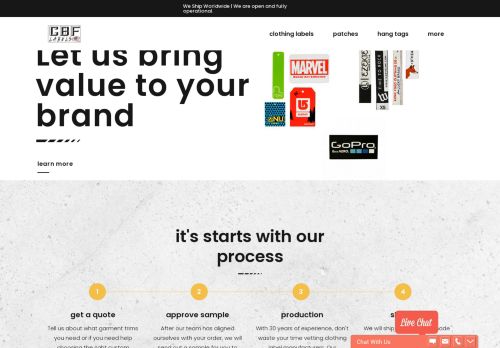 Even living in the Manchester, UK, I was not able to find as good as quality woven labels as I found with CBF. Working with Glenn was a pleasure and even better was their turn around times. Even for me across the pond they were able to Fedex Overnight me my samples for approval (at no additional cost). Five Stars for great clothing labels, customer service, and most importantly the best quality woven labels you could possibly purchase.