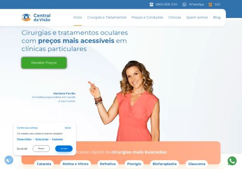 Minha mãe operou catarata e os trâmites foram todos feitos pela Central da Visão. Ficamos muito satisfeitos com todo atendimento, com os descontos, as informações...