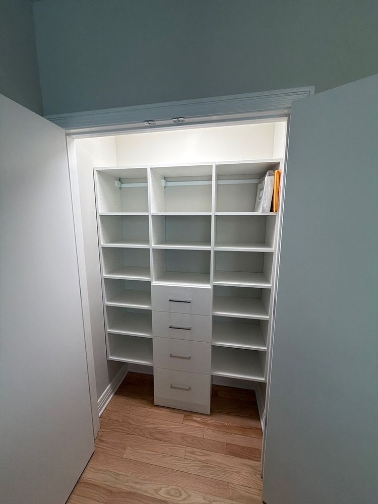 To add some specifics, I had them do three closets, a coat closet, a laundry closet, and my primary bedroom closet. I'm in an old high rise apartment with a quirky layout, and they helped me find custom solutions that fit my needs perfectly.