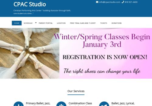 The thing I love most about CPAC is it's a safe environment for a teen girl or boy. If you're looking for a competitive dance studio - THIS IS NOT IT. CPAC is all about inclusivity, diversity and Jesus, NOT dance competitions, racy costumes and weekend trips. The students pray before each class with their instructor and circle up at times and talk about how everyone is doing. It's a warm, caring, loving place to learn dance. HOWEVER - the dance recitals (twice a year, Holiday show in December, Spring recital in June) ARE TOP NOTCH. I cried like a baby at my daughter's first recital (Nutcracker, Dec 2015) as it was so beautiful and professionally done. The costumes were beautiful and the dancing was exceptional. I was NOT expecting this humble, sweet little studio to put on such a show. It honestly knocked my socks off!
