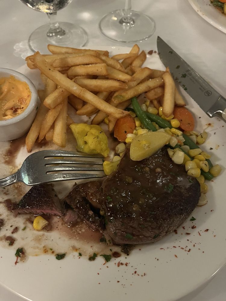 We came here for my mother in laws birthday and the food was DEVINE. First of all one of the best things is you walk in and theres this wonderful dim lighting and soft music that's playing. The wait staff is so very kind and speaks softly. Very cozy seating arrangements. It's overall a very relaxing dining experience! We got the chicken, the fish, a steak, and their pork dish. (I can't remember the French names for everything) all the meats were so tender and flavorful. And even the sides were seasoned perfectly. The veggies were covered in this wonderful buttery sauce. Even the lentils were delicious! We had the flourless chocolate cake. Yum yum yum. Would definitely come here again!
