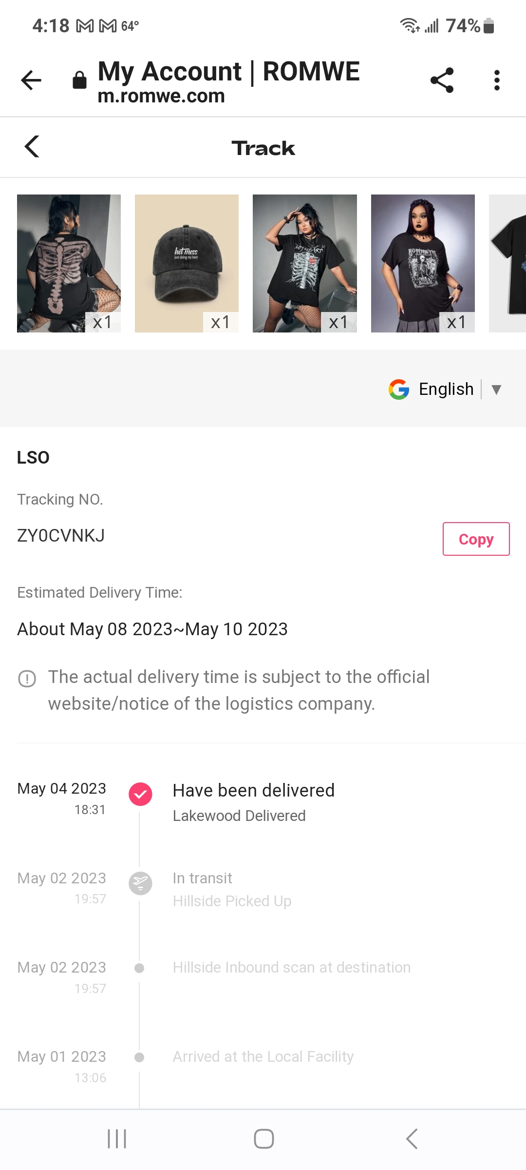 I am disabled and 60yrs.old (f) not that that matters, what matters is after spending 101. Romwe gave me a bogus tracking number for LSO. I will add receipts, it wasn't supposed to be delivered until 8th thru 11th, but by me spending as much as I did on a fixed income & a 1st with them, and after the tracking number was useless I checked their site daily only to discover they claimed it have suddenly been delivered, first they claimed the 4th in which I'm disabled so I have everything delivered, that day only Amazon, and Harley Davidson came to my house(apt) my place is next to the main door, so nothing comes in I don't see, I went to their site to let them know that it's saying delivered, but either they are liars or they sent it elsewhere. My address is correct, finally I got an email back with them saying it's been delivered... SMH like WTH as if I didn't see their bogus message on the site like I have yet to receive the delivered email or anything. They sent me something saying it is delivered however their delivery day is different from the day I received from their site. My kid bought 20. Worth of stuff and received it, and this is why I say don't spend more than this.