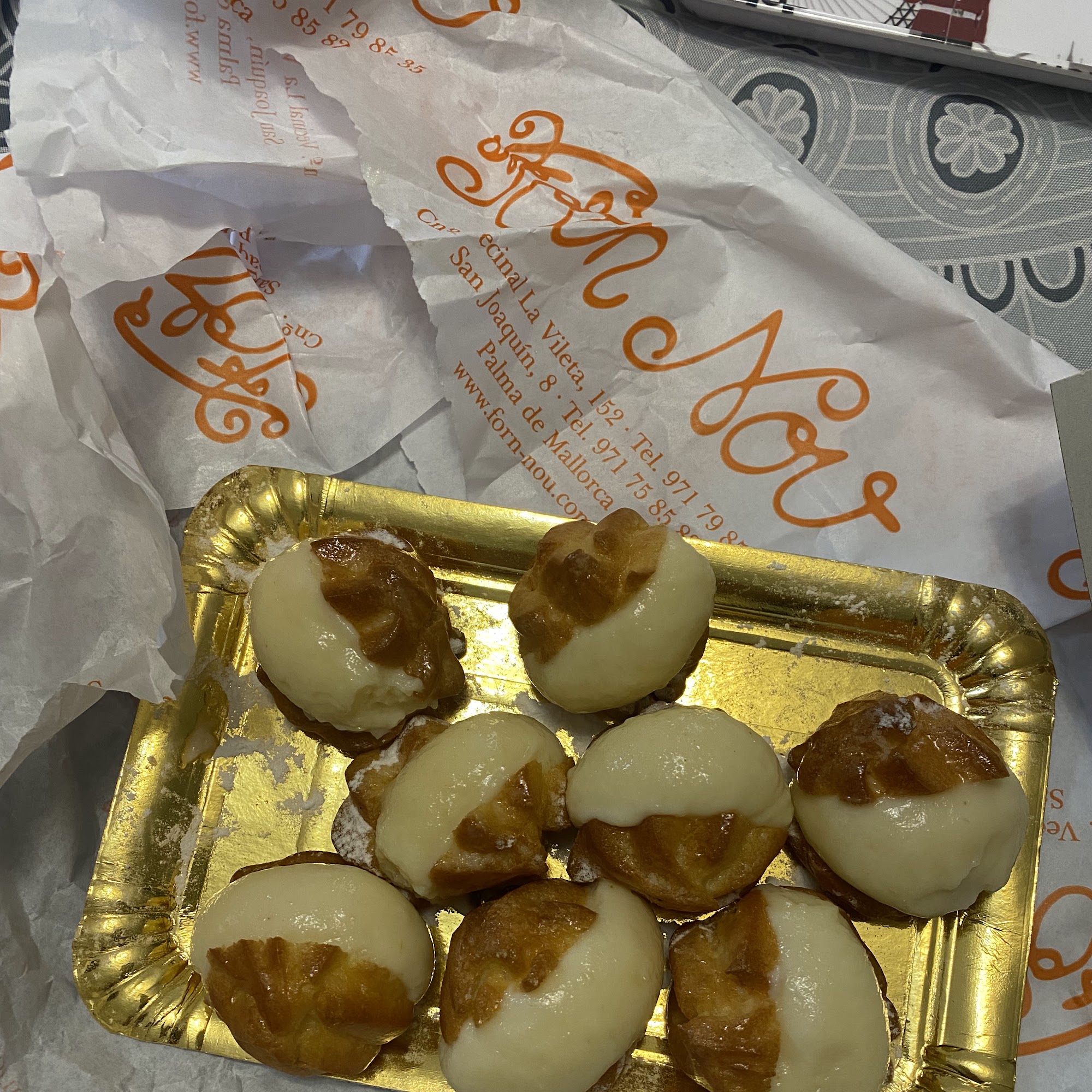 Buñuelos de crema completamente congelados. Hemos sido engañados por la persona que nos ha atendido que nos la ha colado vendiéndonos estos buñuelos que los ha sacado del congelador. No volveremos. Están incomestibles. Muy enfadados