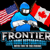 The crew had to first grind and sand the logs, then media blast all the logs. They then sprayed and back brushed 3 coats of Sikkens Butternut Log and Siding. Thanks Terrie for allowing us to take photos and video during the process