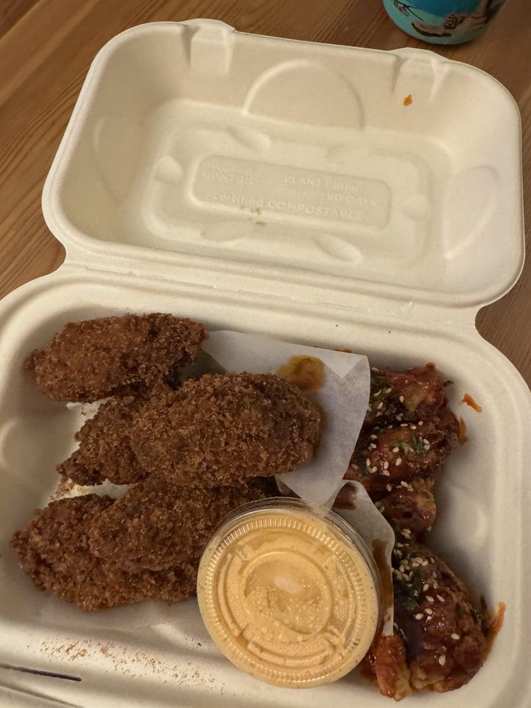 This one comes with a sticky sweet sauce that settles on top of the fried chicken. It was a little too sweet for me, so I probably would not get it again. A gentle 3 out of 5.