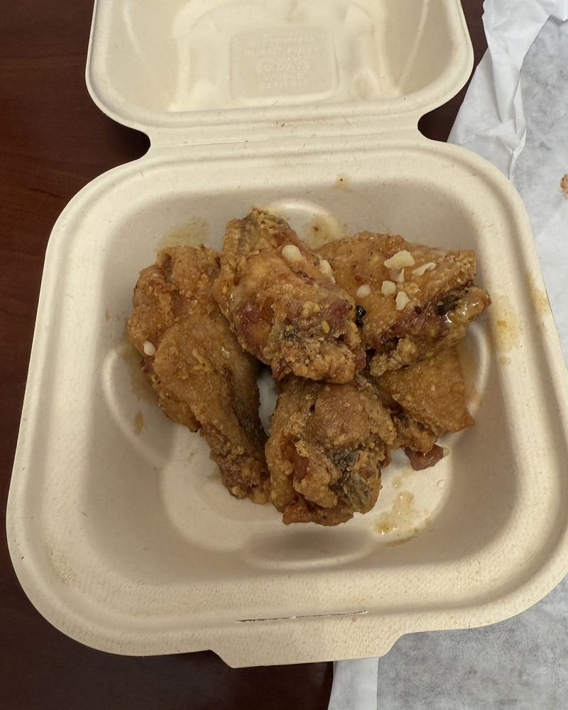 Anyways, I ordered the Garlic Bacon Parm Wings and Chicken Parmesan Sandwich. I liked the flavors of both items, but some items could've had more sauce since the sandwich felt dry. I was also disappointed in the size of the wings. It seems a little too pricey to buy 5 small wings for the price I paid for. The wings did taste very good and I was able to taste the bacon parmesan flavor it has though!