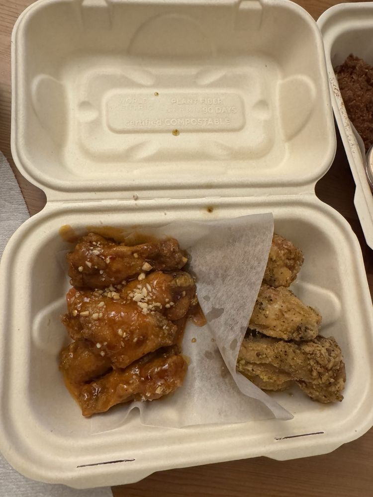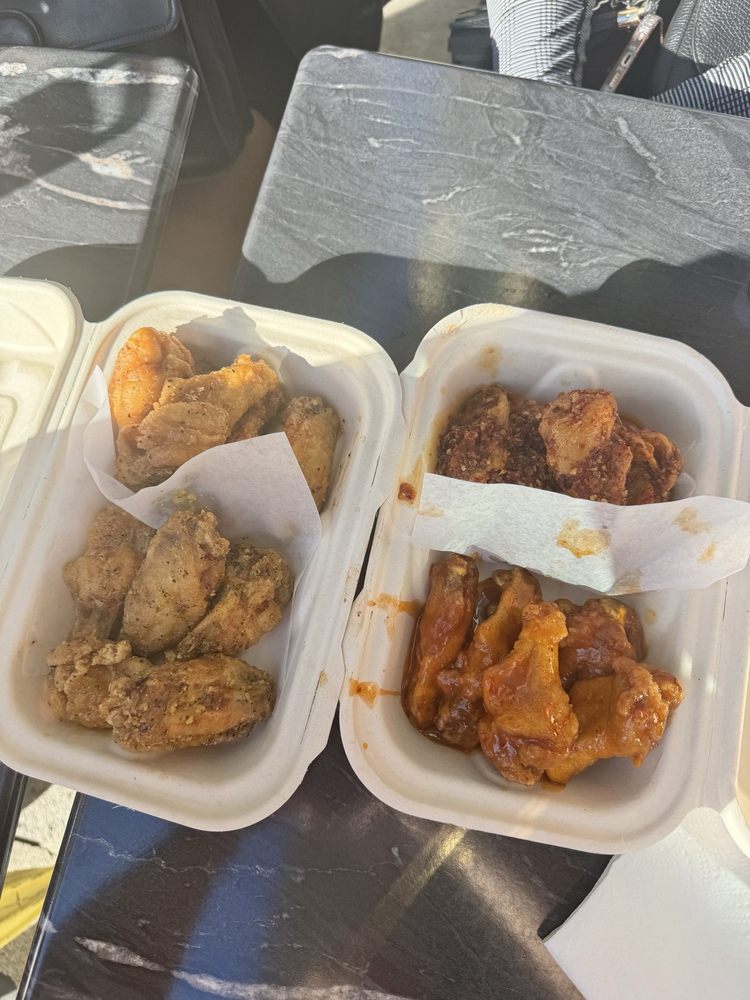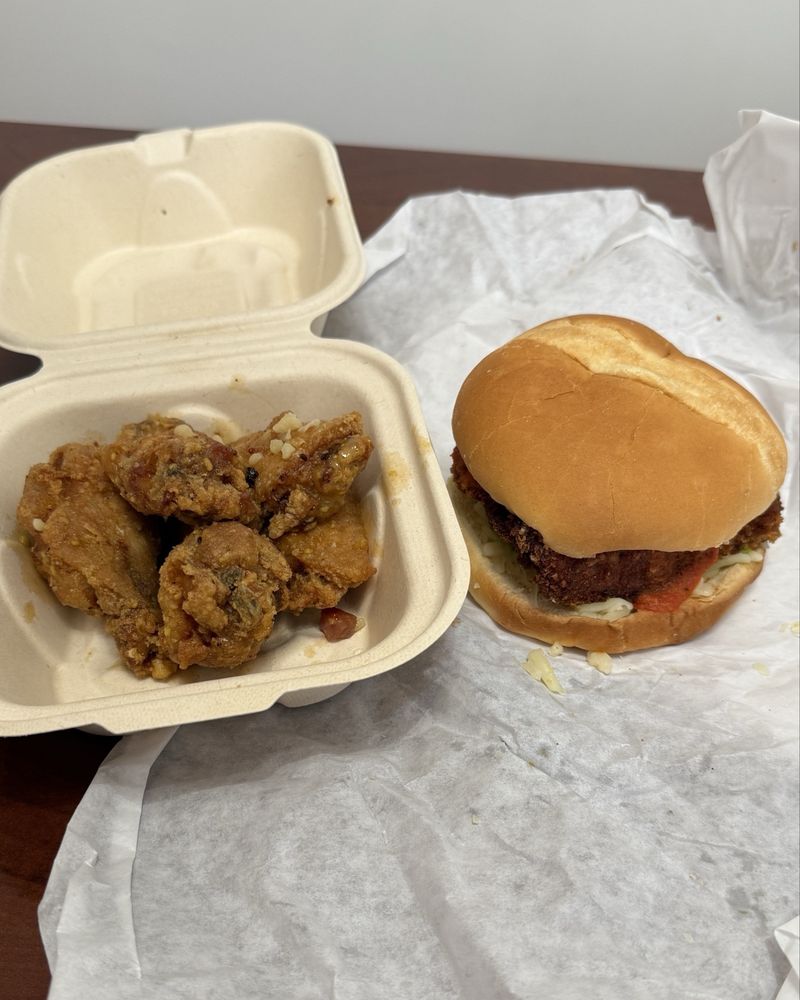Chicken sandwich was absolutely delicious. Flavors were on point and so tender. Wings were also delicious. Cooked perfectly and seasoned well. My favorite wing had to be the mango habanero and the chili crisps. None were really spicy but had a slight kick which was nice. No seating and lines get a tad crazy, but def worth the hype