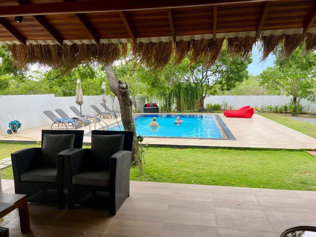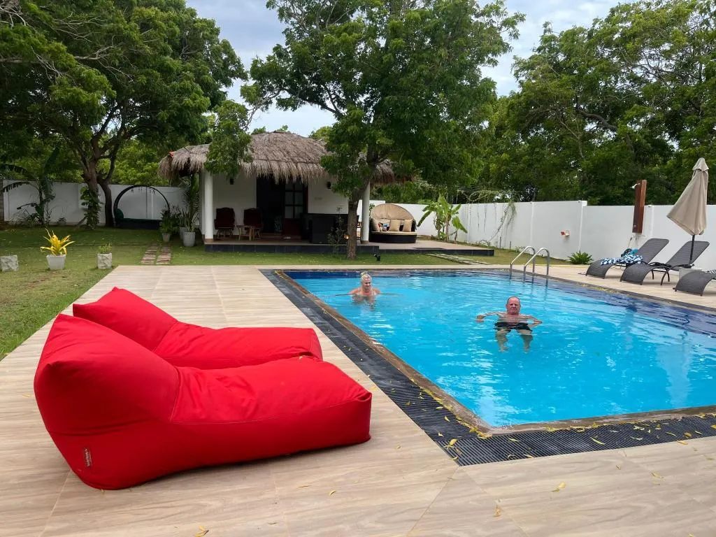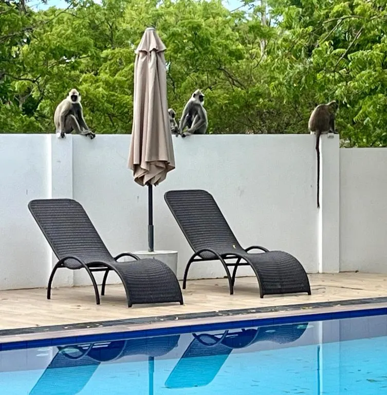 Pros: L'accueil de Shaluka qui a répondu à toutes nos attentes, organisation de safari, aide pour les transferts, cuisine à la demande (très très bon), transport en tuk tuk! La propriété est superbe, vous pouvez voir des paons et des singes traverser le jardin. Située à une vingtaine de minutes du parc national de Yala. La piscine est magnifique avec des équipements de qualité. Les chambres sont impeccables, confortables, avec des salles de bain modernes. Merci et bonne chance pour les projets d'agrandissement! 😃 Cons: ...)