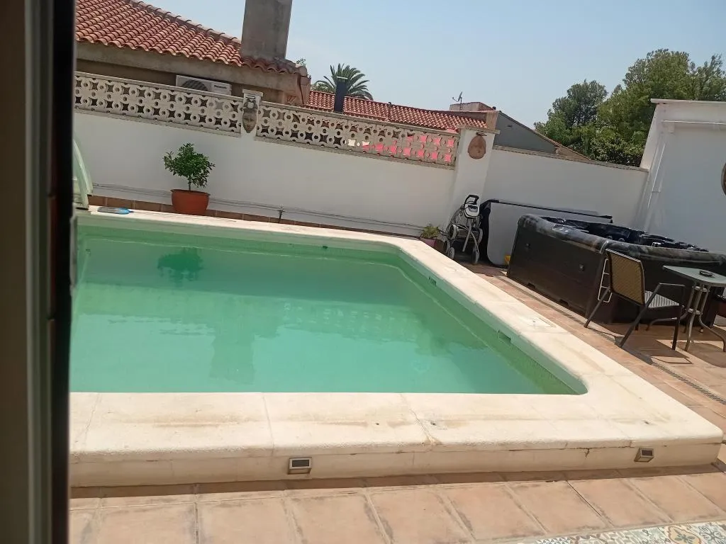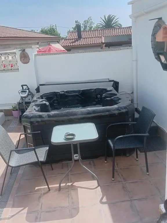 En las imágenes publicadas, se muestran las instalaciones de la casa y la terraza, que incluyen 5 mesas, barbacoa, horno de leña y jacuzzi. Sin embargo, el alojamiento que usted ha alquilado es un espacio de 30 m², completamente equipado con cocina, sofá, frigorífico de gran capacidad y todo lo necesario para una estancia confortable.