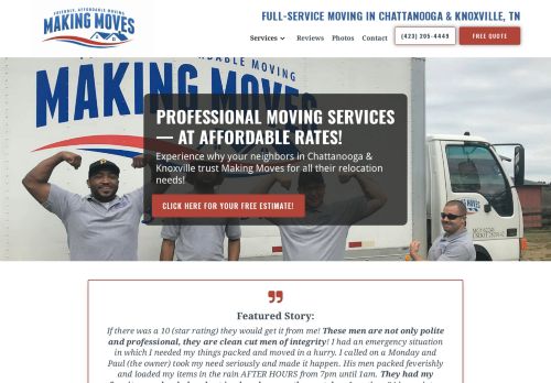 We used Making Moves recently and they were fantastic. We had a very big house with a lot of rooms full of things to be moved. They arrived around 8:30 a.m. and were completely done by 12:00 noon. We were astounded. They took time to wrap lamps and other fragile items in blankets and taped completely for safety, and they were still done well before we thought possible. Highly recommend!