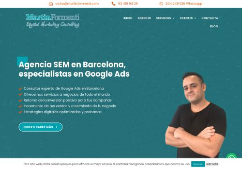 Victor hizo mi web y posteriormente ejecutó un excelente trabajo, tanto en SEO como en SEM, obteniendo excelentes resultados en poco tiempo. Gran profesional, siempre muy atento al detalle y al trato al cliente. Estoy muy contento con sus servicios.