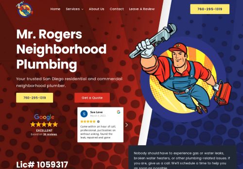 Had a very troublesome water leak where my main water line connected at the meter caused by tree roots. Called Mr. Rogers Plumbing for help. When Arnie arrived, he wasted no time; exposed the leak and repaired it in very short order. Simply great service. Thank you!