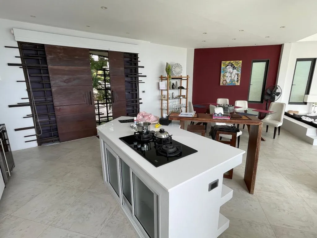 Fully equipped kitchen and amazing decoration and living space details and also a great landscape design.