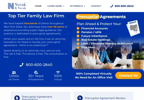I Do Not Recommend Novak and Novak in California I do not recommend Novak and Novak for a pre-marital agreement if you live in California. The pre-marital agreement I received from Jack Novak was reviewed by my finacee's lawyer and he would not countersign it because the document mixed New York law and language with California law and language. Based on this reasoning it was explained to me that the agreement was not an enforceable document and would not be legally binding in a court of law. I tried to resolve this issue with Jack but he would not assist in addressing the issues with the agreement. Very sloppy and lazy work resulting in an unusable document. I ended up having to find another lawyer to draft an agreement that I could use.