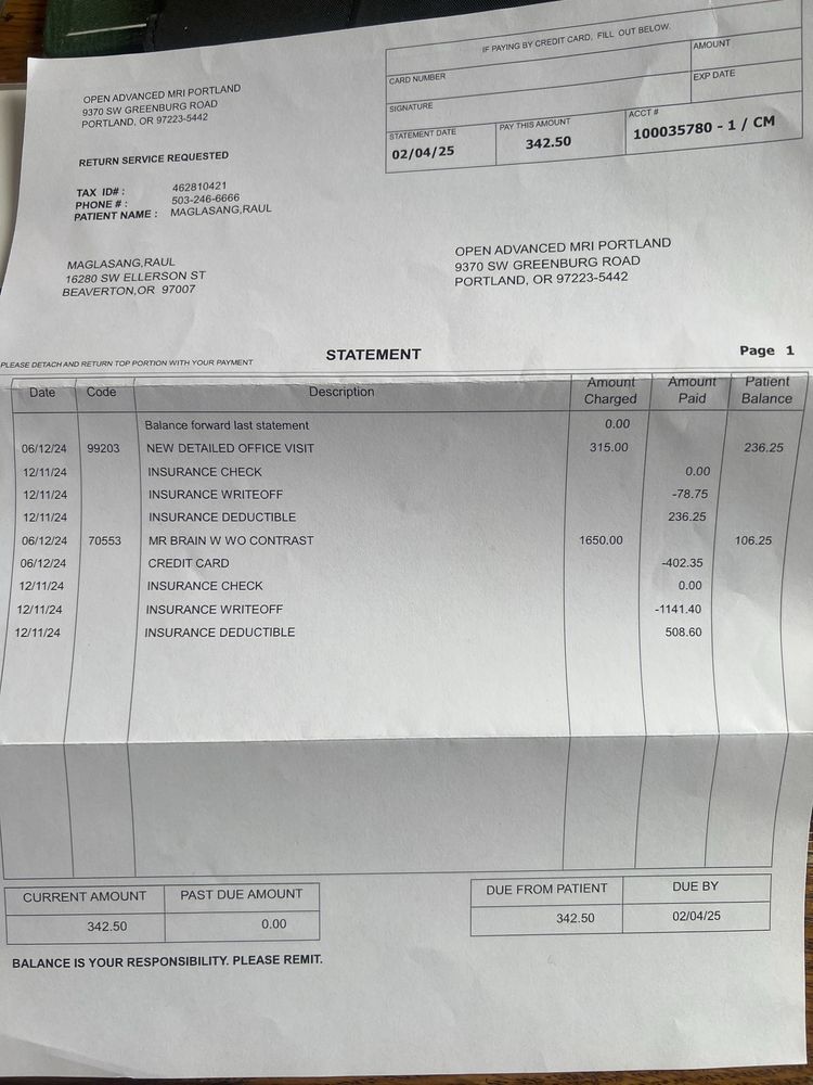 I did my MRI last year of June2024. Now February 2025 I recieved a bill for the amount of $342.50