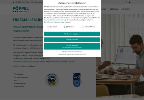 Herr Pöppel Senior und Junior haben uns letztes Jahr beim Verkauf von zwei Eigentumswohnungen innerhalb eines Mehrfamilienhauses unterstützt. Von Anfang an waren alle Gespräche sehr offen, ehrlich, nett und auch locker-lustig. Sämtliche Fragen wurden geduldig beantwortet und es gab quasi rund um die Uhr ein offenes Ohr. Auch bei den schwierigen Voraussetzungen des Verkaufes der Eigentumswohnungen einer Eigentümergemeinschaft, wurden wir gut beraten und es gab Hilfestellung für Lösungen und Vermittlung für zusätzliche Schritte. Die Beratung zum Ablauf, der Anzeige und Abwicklung nach dem Verkauf war absolut professionell, lückenlos und immer vertrauensvoll.