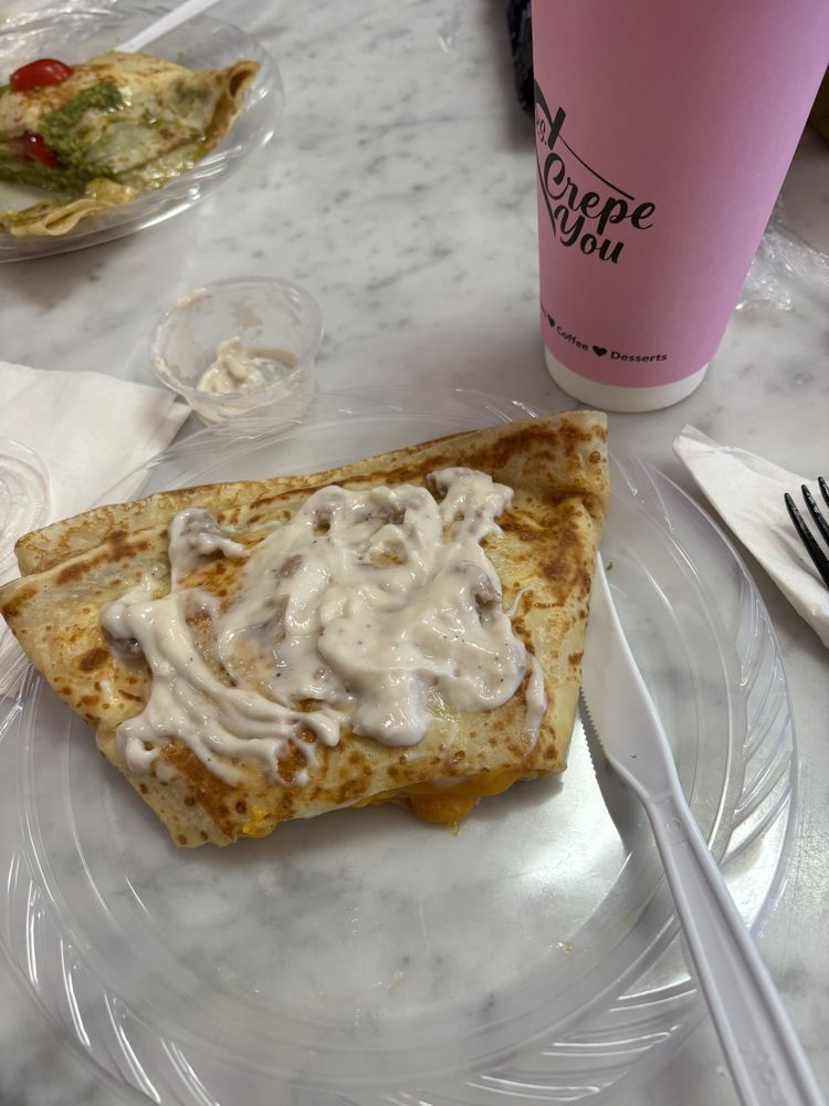 Disappointed. The place is cute and the woman was very nice but the crepes were severely lacking. They looked good at first but after digging in, I was pretty disappointed with the lack of flavor and sweetness I was expecting. They were a little on the cold side too. I ordered strawberry cheesecake and the bananas over you. The strawberry cheesecake had very little strawberry glaze (they should put some inside it) and the strawberries itself were not sweet so it was just more tart and dry than anything. If you know about strawberries these days, you know it's hard to find sweet ones, especially when they're out of season so you would think that they would sweeten them, but they don't. The cheesecake bits were mid. The cream that was inside of it was gross. It had a flavor that was more cheese than cheesecake. The bananas over you was slightly better however, with both of them, the pudding filling was hardly there leaving them both to be overall dry and not as sweet. I did however, have tons of bananas which I didn't mind, but the ratios felt off. The bananas over you had hardly any caramel sauce drizzled on it. The vanilla wafer you get on the side was actually sweeter than the crĂŞpe itself. There was no one else there and being the only customer I thought I was going to get a freshly made crĂŞpe, but it was not. It was simply reheated crepes made from who knows when. I'm pretty bummed out because the price is a little high. It might be a big size, but the quality is not what you pay for.