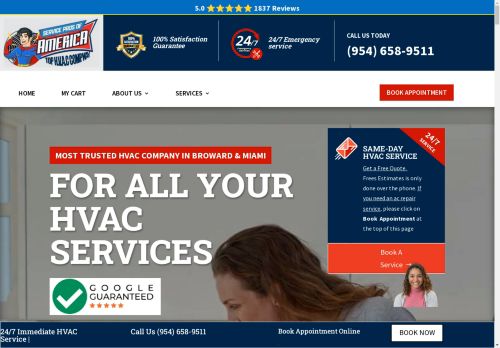 First of all, there was a technician at my place less than an hour after I contacted service pros of America. Once he arrived he explained everything to me and had my AC up and running in no time. (With a thorough cleaning.) The price was fair and there was no attempt to upsell anything. I will definitely use them again if needed!