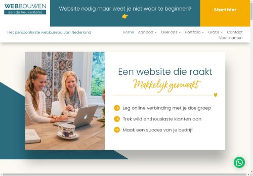 Een paar jaar geleden heb ik bij Webbouwen aan de keukentafel mijn website laten maken. Wat een geweldige ervaring. Ik werd ten eerste snel over mijn angsten heen geholpen. Zeer ondersteunend, verrassend hoe het allemaal bij elkaar kwam. Zij de know how en toch helemaal ik wat eruit kwam. Geweldig hoe ze die vertaalslag maakten. Ik heb geleerd aanpassingen te maken, na al die jaren nog steeds dik tevreden. Een absolute aanrader.