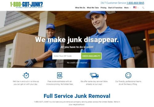 OMG my heros. Just moved and have already called them twice. Phenomenal service, easy to book online! They show up and quote you on the spot (it's by volume) and to me, it's worth every penny. I'm in decluttering mode now and may use them a third time. Highly highly recommend. Both times have booked same day. They are fast, efficient and communicative. Don't waste any more time. They literally take anything (except hazardous stuff). They are also very friendly and professional. Additionally, they will donate to goodwill where it makes sense and other organizations for people in need. Get rid of your junk today!!