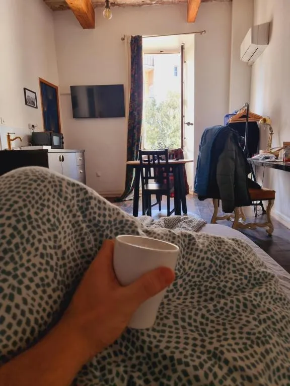 ☺Kleines, charmantes und sauberes Appartement mitten in Le Panier, dem Altstadtviertel von Marseille. Der alte Hafen ist fußläufig in etwa 5-10 Minuten zu erreichen. In dem Appartement ist kein übermäßiger Luxus zu erwarten, es ist aber alles vorhanden, was für einen kleinen Aufenthalt benötigt wird: Shampoo, Handtücher, Bettwäsche, eine kleine Auswahl an Kaffee und Tees, sowie Küchenutensilien wie Mikrowelle, Wasserkocher und Kühlschrank. Der Blick von dem Fenster geht auf einen Olivenbaum im Innenhof. Zutritt zum Haus und in die Wohnung erfolgt über Codes - hat in unserem Fall einwandfrei funktioniert.