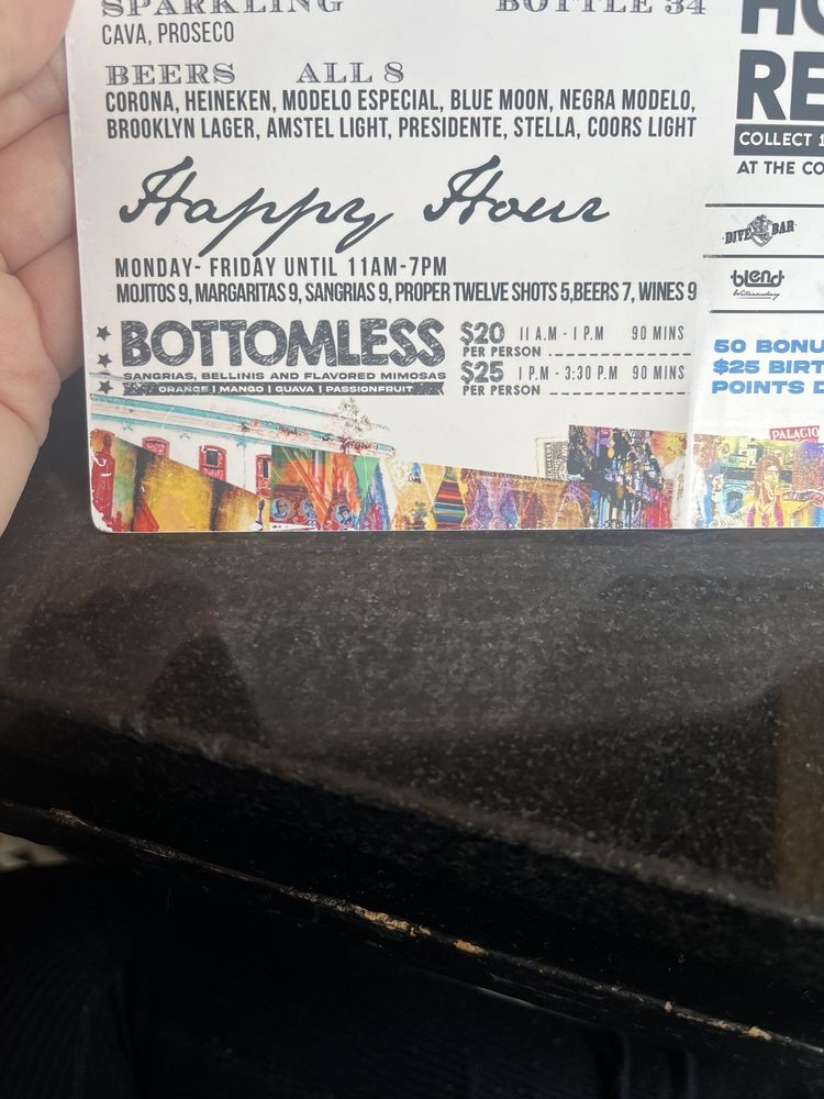 The food here at Blend on the Water is always really good. Service is also almost always top notch, and you can't beat the location of it literally by the water with a phenomenal view. The ambiance inside this restaurant is beautiful. High ceilings and beautiful decor. The bathrooms are a little dark, but that adds to the uniqueness of this restaurant (or in some circumstances i have no idea where I am going lol) One of my favorite foods is the mexican corn and the arepas. I also enjoy having brunch here with some good drinks. I'd say the prices are on the higher side, but it comes with a good experience. However, I might add that if you don't like it too loud or rowdy, you might not enjoy it. This is more of a very laidback girls night out or celebrations type of place, not a quiet intimate romantic spot.