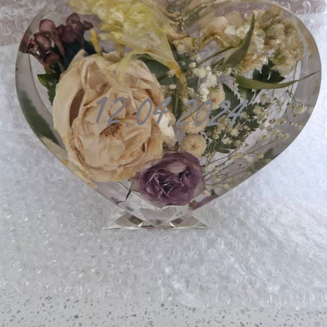 The whole purchasing process went incredibly smoothly. It was really lovely to receive updates on the order as things went a long too. Thank you. The heart I received is absolutely beautiful. It has preserved my wedding flowers beautifully and looks fantastic on display.