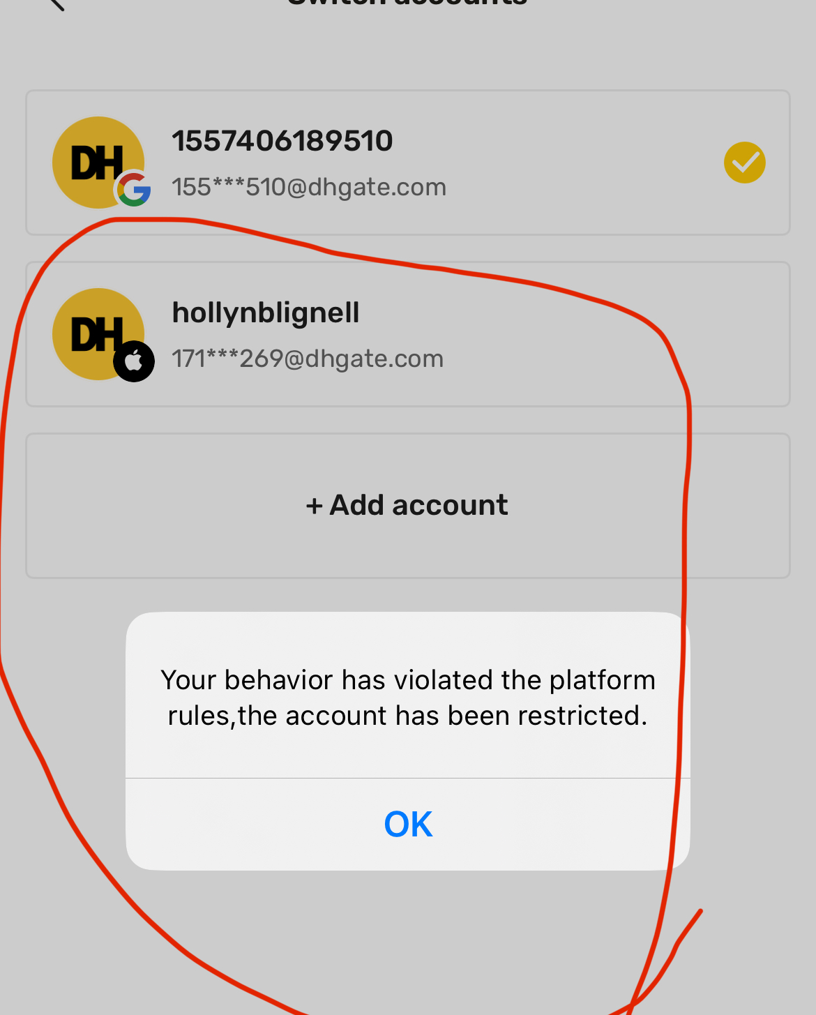 I had no problems at first until I started ordering a lot. Suddenly I've been locked out of my account that has items that are not received, the notice says, "Your behavior has violated the platform rules, the account has been restricted." I have no idea why but I do know I have multiple items I've paid for that are not received. The email address listed to contact was safetycenter@ dhgate.com, which I emailed inquiry to.
