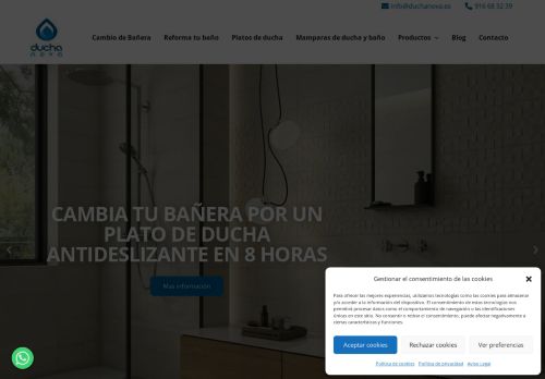 Mi experiencia con Duchanova ha sido estupenda, les contraté para cambiar la bañera por plato de ducha y desde el primer momento la atención de Juan Carlos y sus consejos fueron muy acertados. La obra se realizó el día concretado y fueron muy puntuales y profesionales. Antonio realizó un estupendo trabajo y en todo momento fue muy atento y tuvo mucho cuidado con una estantería que tenía e hizo lo posible para no tener que quitarla, además me arregló una cosa que no tenía nada que ver con ellos.