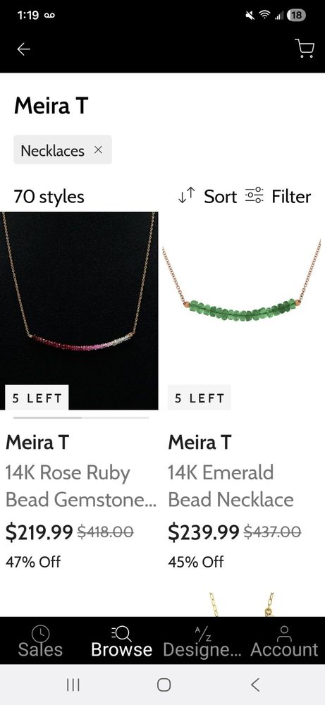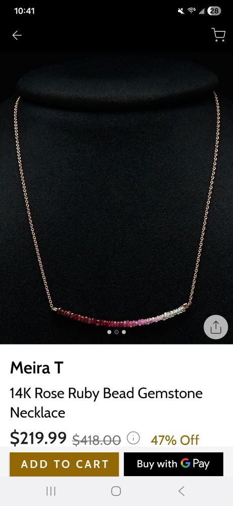 I bought a necklace and dull, less quality, and different from the gilt photo came. This is second time that happen to me with ordering meira T item. They send an item that kind of look like one you are ordering which is less quality and different. One time, may be a mistake. Second time? It is a honest issue. Is it gilt? Or is it meira t? Or both? For both time, they acknowledge the difference and offer little discount(like 20 dollars) or full refund. The sales rep says they cannot send the item due to its out of stock. Yet, the website is selling same item now and it says 5 items left to sell. Huh? Hope no one buy this item and go through what I went through.