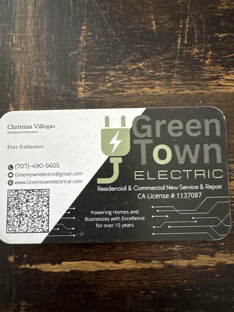 Green town Electric is the most fair and skilled electrician in Sonoma County! I have used Christian from Green Town electric several times at my home and business and he always stands behind his work. Very friendly and professional!