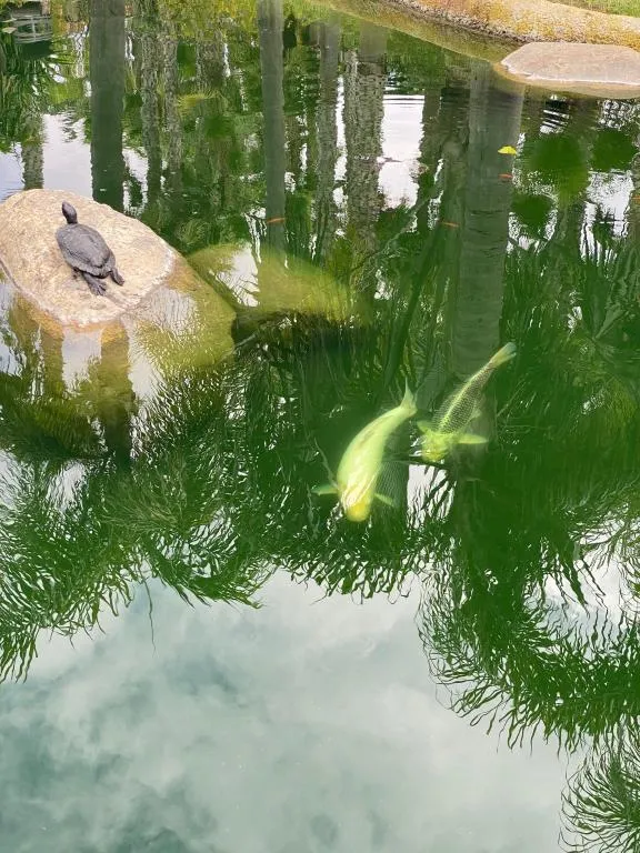 Karpfen und Schildkröten . Sehr schöne und interessanter Wellnessbereich, umfangreiche Trainingsmöglichkeiten in der sehr grosszügigen Fitnessabteilung.