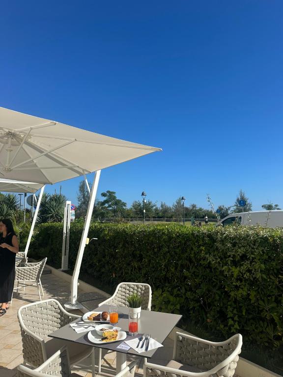 Hotel elegante a 20 metri dal mare ,stanze pulite con tutti i comfort ,vista mare eccelente .Gestito da tre donne con molta professionalita e attenzione agli ospiti.Assolutamente da provare il rooft con otti aperitivi vista mare e brezza marina .Che dire vacanza eccellente, rilassante ci torneremo.